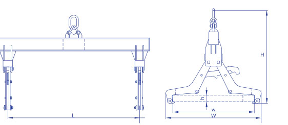 | 额定载荷 t | 适用范围 w (mm) | 夹持最大板厚 h (mm) | 跨度 L (mm) | 最大外形尺寸(mm) | |